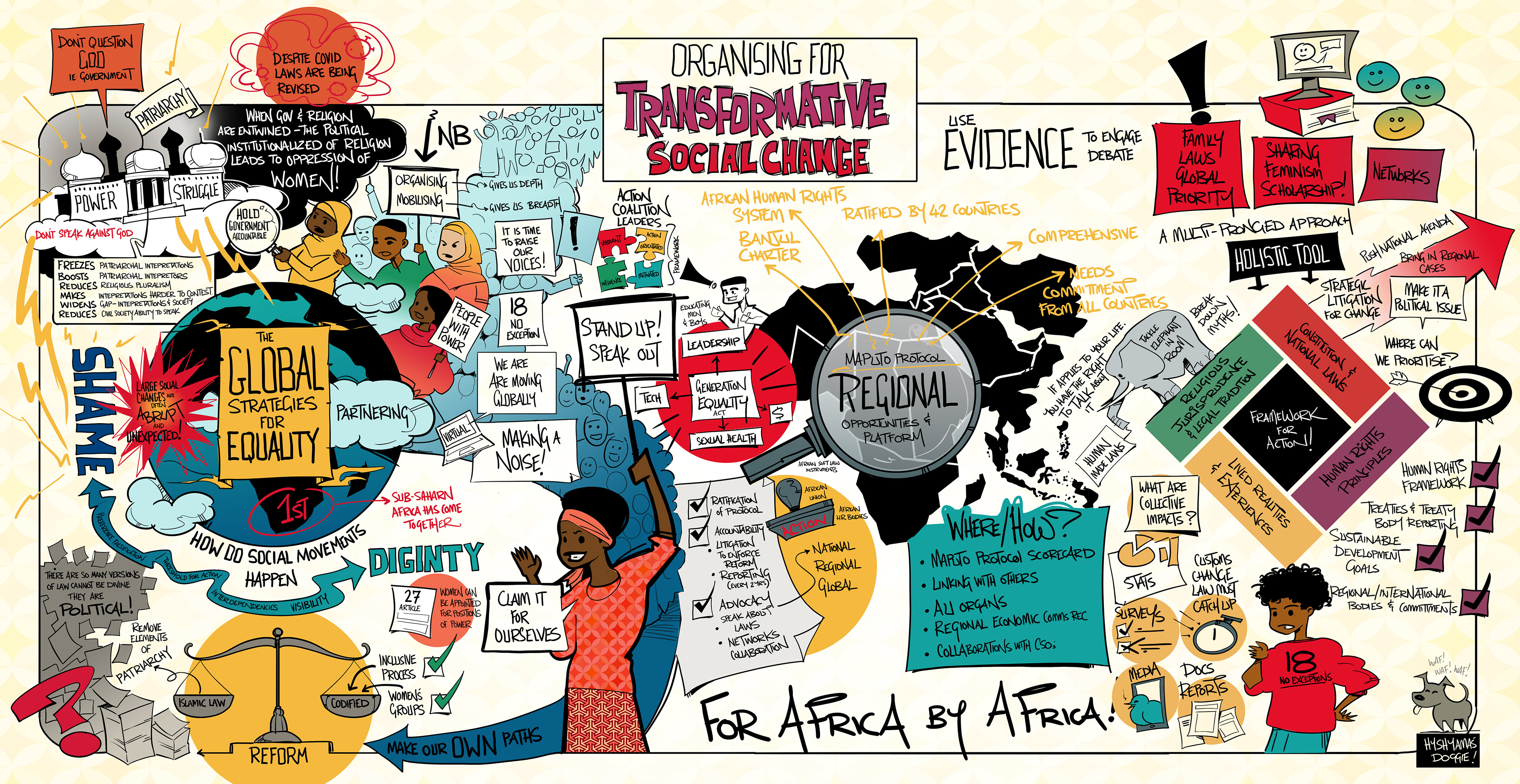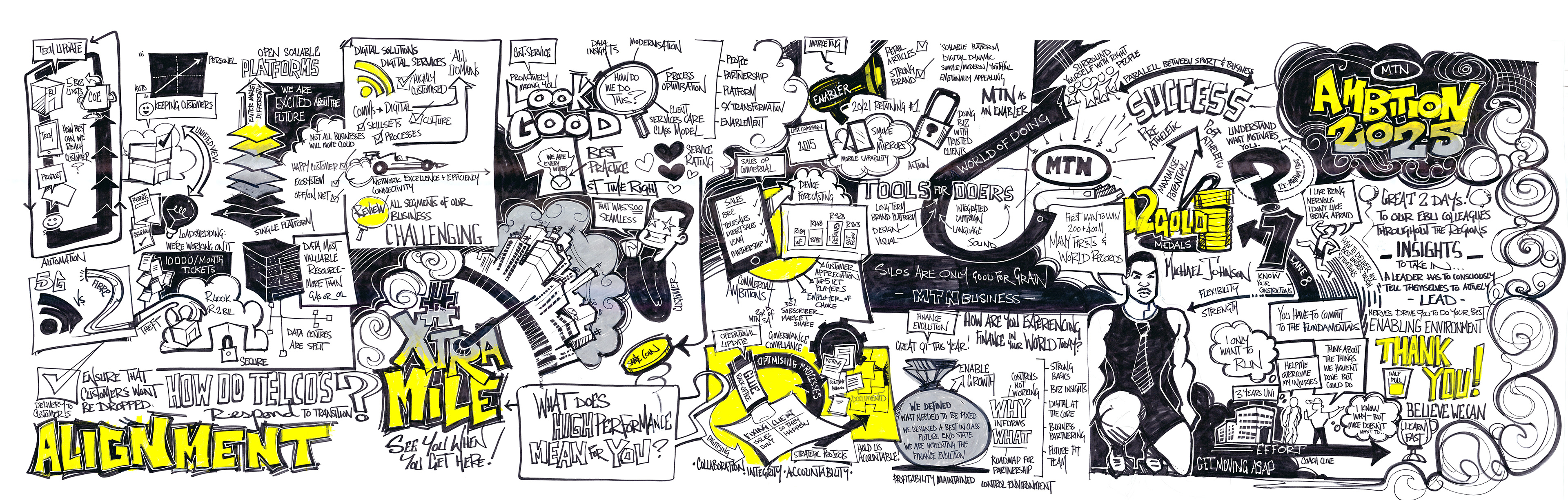 Graphic recording: Essentially, I stand in front of a group of people having complicated discussions and draw what they’re saying. It’s terrifying but also exhilarating to bring intricate ideas to life in pictures. Over the years, I’ve been sent off to do graphic recordings in Abu Dhabi, Dubai, St Louis, North Carolina and curiously enough the Joburg Zoo.
